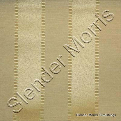 Marbella from Slender Morris is a polyester/cotton drapery fabric featuring a traditional regency stripe. It comes either uncoated or with the acrylic block out coating on the back.