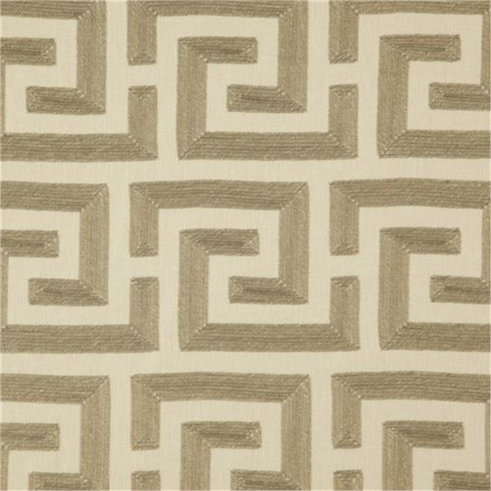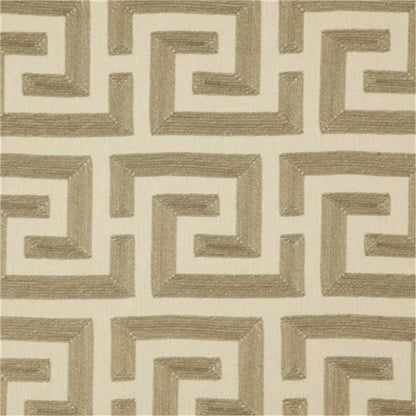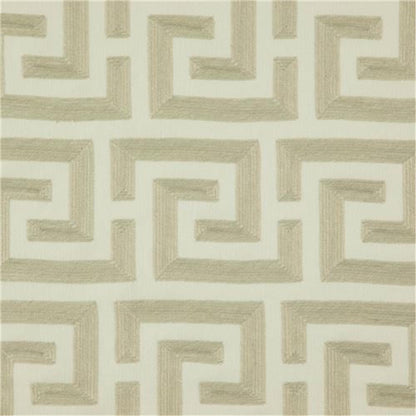 Moresca from Zepel is a decorative fabric for drapery or accessories. The pattern is an embroidered Greek Key design. The composition is polyester and cotton and it originates from India.