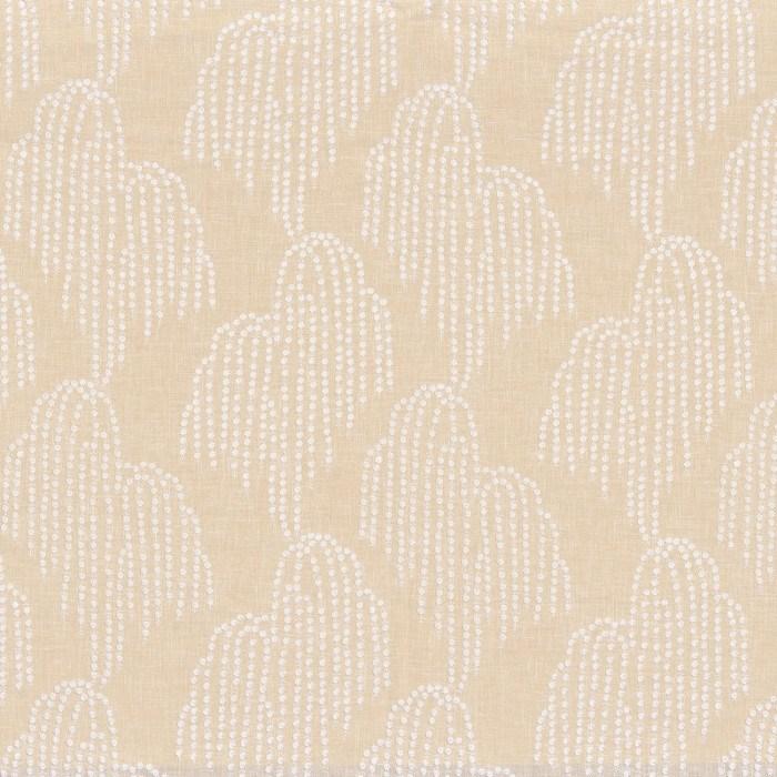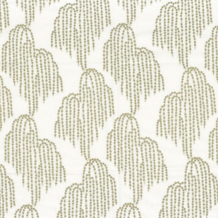 Saule Pleureur is an embroidered fabric with a delicate abstract design. Polyester/cotton base cloth with viscose embroidery. Suitable for curtains & accessories. Part of the Jade collection.